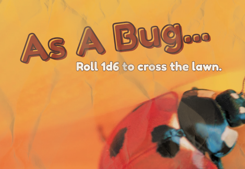This is a solo journaling rpg about being a small bug in a big world. In this micro ttrpg, gamble with chance using the PUSH mechanic made popular by Cezar Capacle. Roll 3 7s and your bug is done!